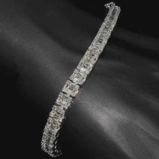 10k Gold and 4.13cttw Diamonds Square Block Baguette and Round Tennis Bracelet.