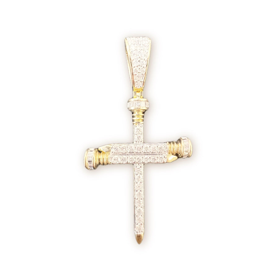 10k Yellow Gold Diamond Nail Cross. 0.45cttw