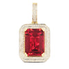 10KY 0.50CTW DIAMOND 2-ROW PENDANT WITH 7.00CT SYNTETHIC RUBY