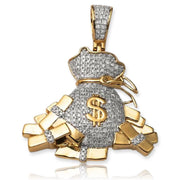 10KY 1.00CTW DIAMOND MONEY BAG PENDANT WITH STACKS