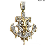 10KY 1.35CTW DRIPPING DIAMOND ANCHOR WITH CRUCIFIX