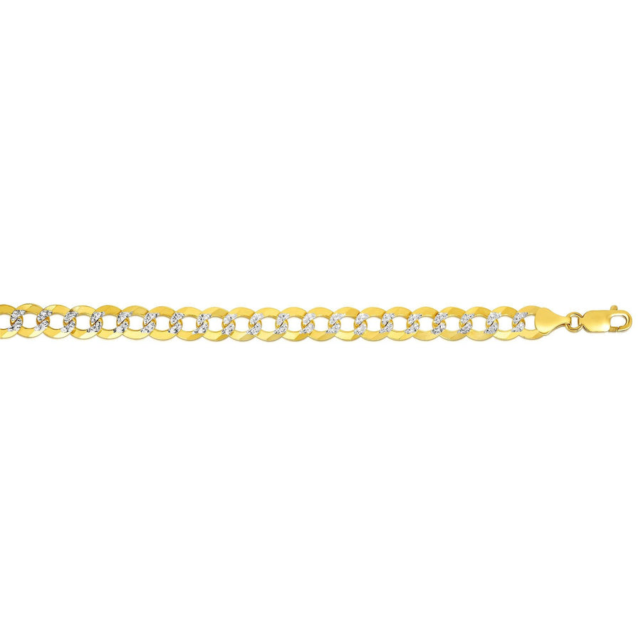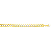 14K Yellow Gold 9.7mm White Pave Curb 26" Chain with Lobster Lock