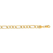 14kt 18 inches Yellow Gold 6.5mm Diamond Cut Alternate 3+1 Figaro Lite Chain with Lob ster Clasp