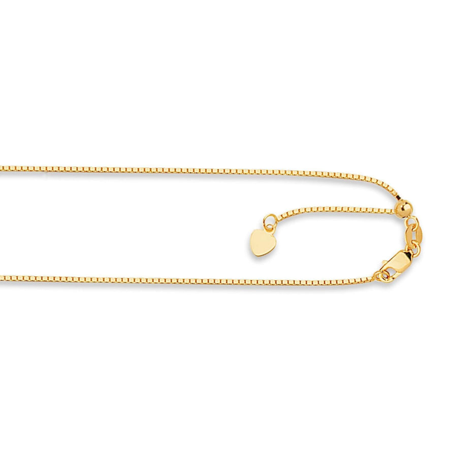 14kt 22 inches Yellow Gold 1.1mm Diamond Cut Adjustable Box Chain with Lobster Clasp