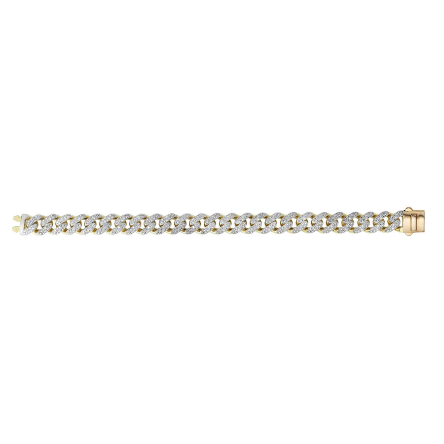 14kt Gold 8.25 inches Yellow Finish 11.5mm White Pave Curb Link Bracelet with Box Clasp with 1.1000ct 1.35mm White Diamond