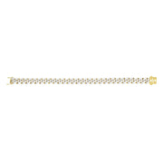 14kt Gold 8.25 inches Yellow Finish 9.5mm White Pave Curb Link Bracelet with Box with Both Side Push Clasp