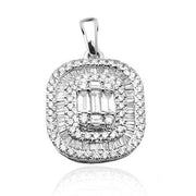 14KW 0.75CTW BAGUETTE DIAMOND PENDANT - 3-ROW HALO