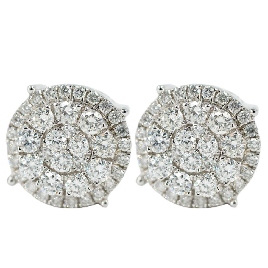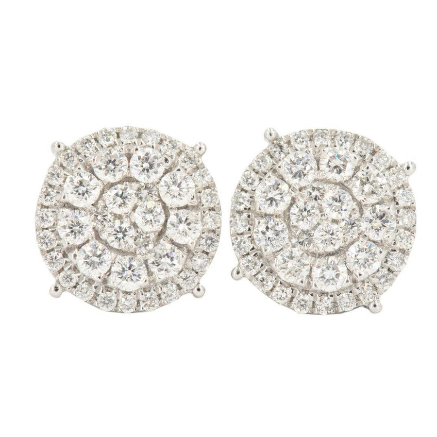 14KW 1.50CTW DIAMOND ROUND CLUSTER EARRINGS WITH HALO