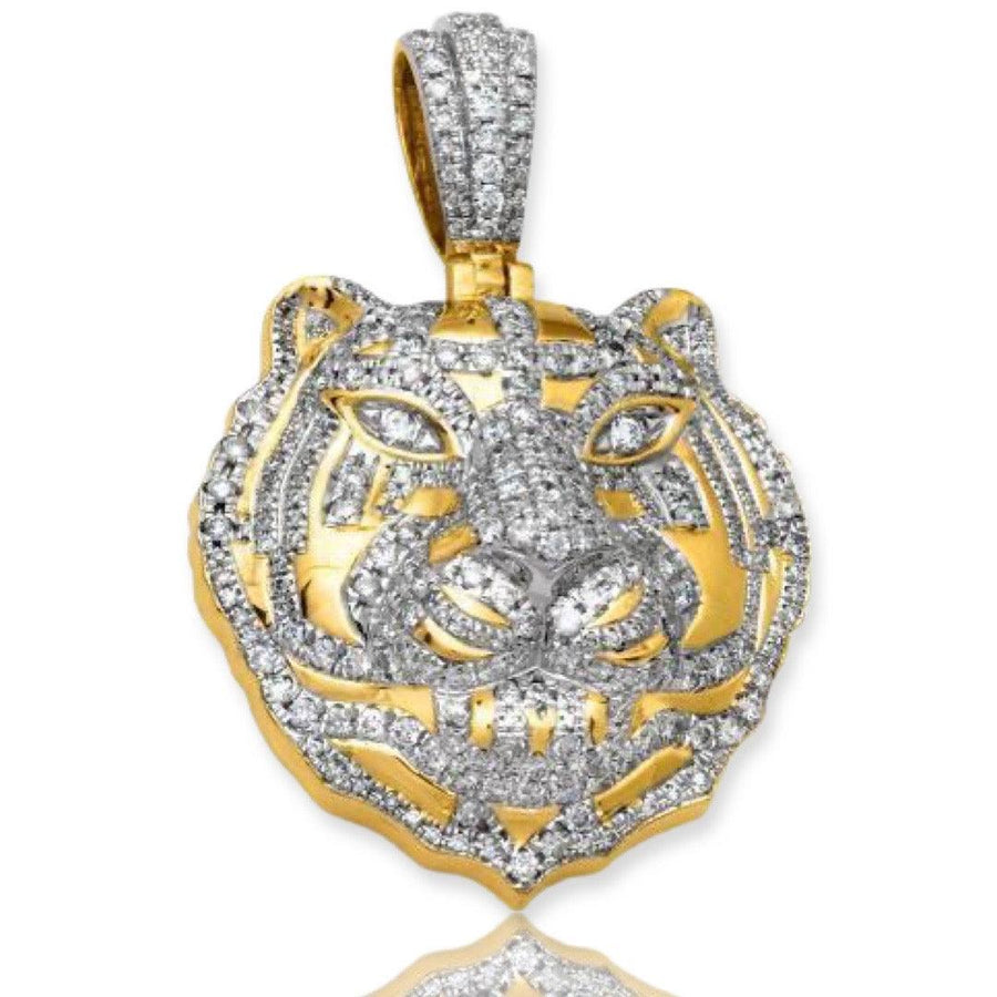 14KY 1.35CTW DIAMOND TIGER HEAD PENDANT