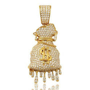 14KY 3.75CTW DIAMOND DRIPPING MONEY BAG PENDANT