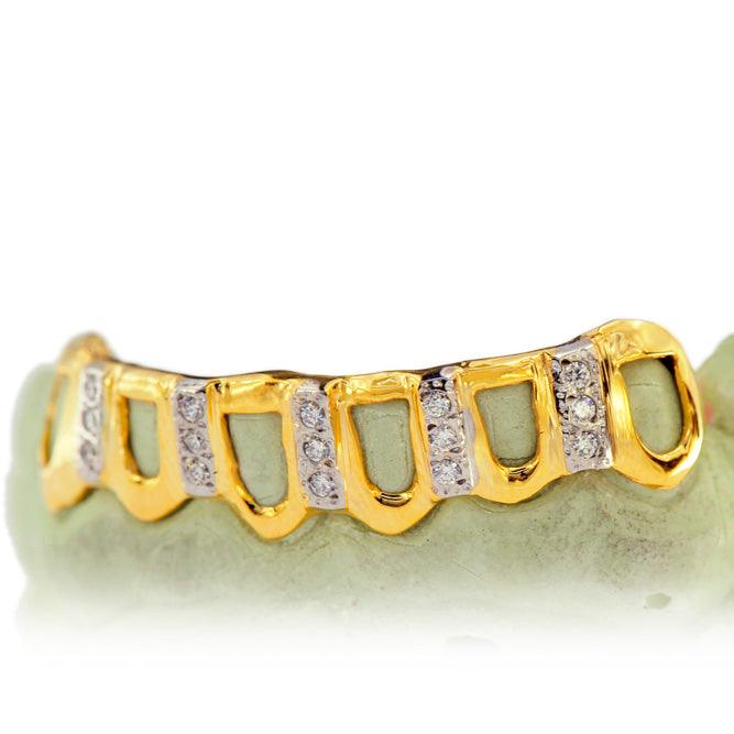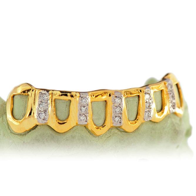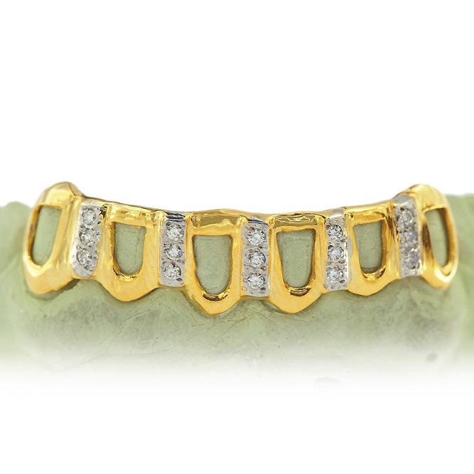 The price being displayed is for an 6 teeth top or bottom grill in yellow gold with round diamonds. When placing your order please customize it to your liking & budget.