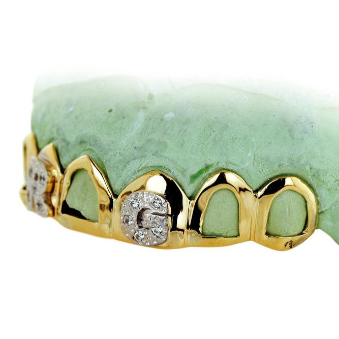 The price being displayed is for a 6 teeth open face grill with two letters with 5 diamonds each as shown in the picture.  When placing your order, please inform us of any customization or upgrade request.  We will contact you to discuss the pricing and confirm your order.