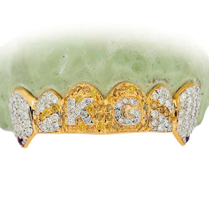 The price being displayed is for a 6 teeth top or bottom grill in yellow gold with round diamonds. When placing your order please inform us of any customization or upgrade request.  We will contact you to discuss the pricing and confirm your order.