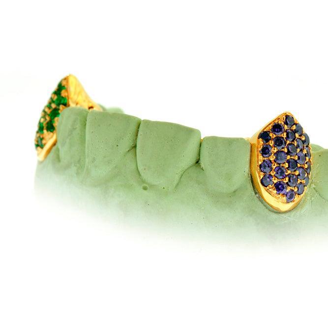2 Piece Sapphire Fang grill In Hand Prong Setting.