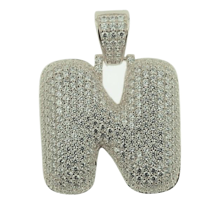 TVJN- Sterling Silver CZ Letter N Pendant