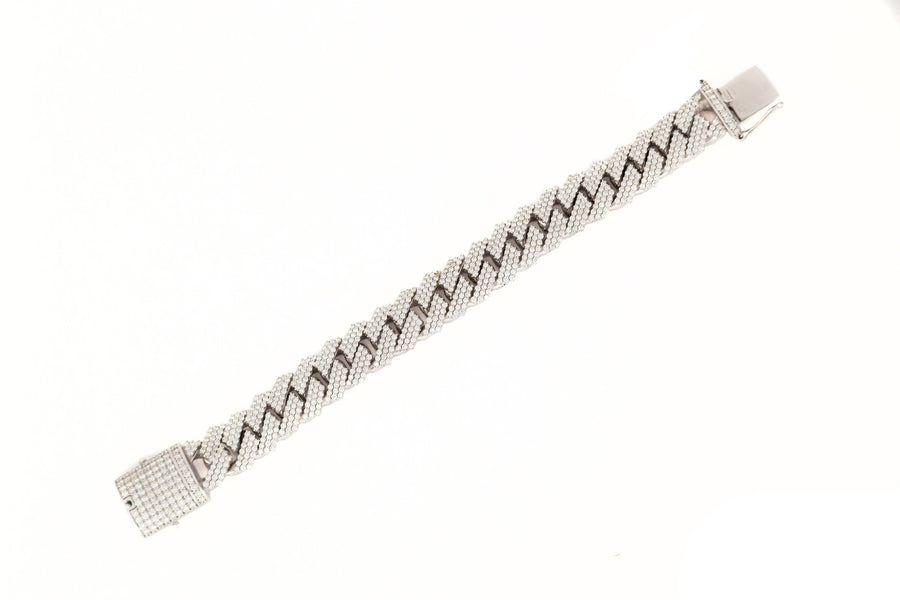 Luxurious tone/single-tone solid gold & cuban bracelet crafted in 10k white gold encrusted in pave set diamonds. The bracelet features a secure diamond box clasp closure with the official Johnny Dang & Co engraving.