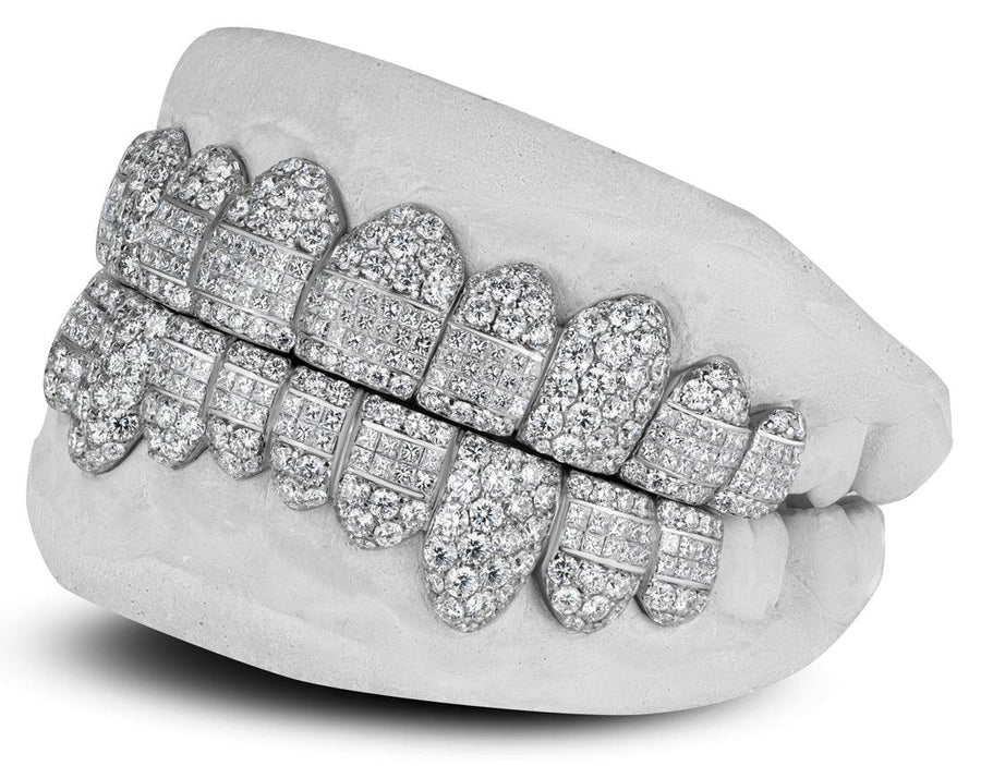The price being displayed is for 10 Top or 10 Bottom in 10k  gold with round and invisbale diamonds in hand set setting.  When placing your order, please inform us of any customization or upgrade request.