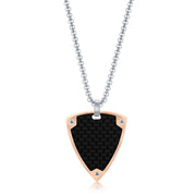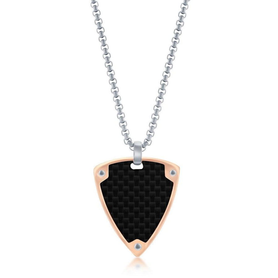 Stainless Steel Black Carbon Fiber Rose Gold Border Triangle Necklace