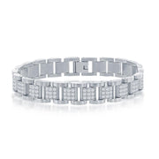 Stainless Steel CZ Square Link Mens Bracelet