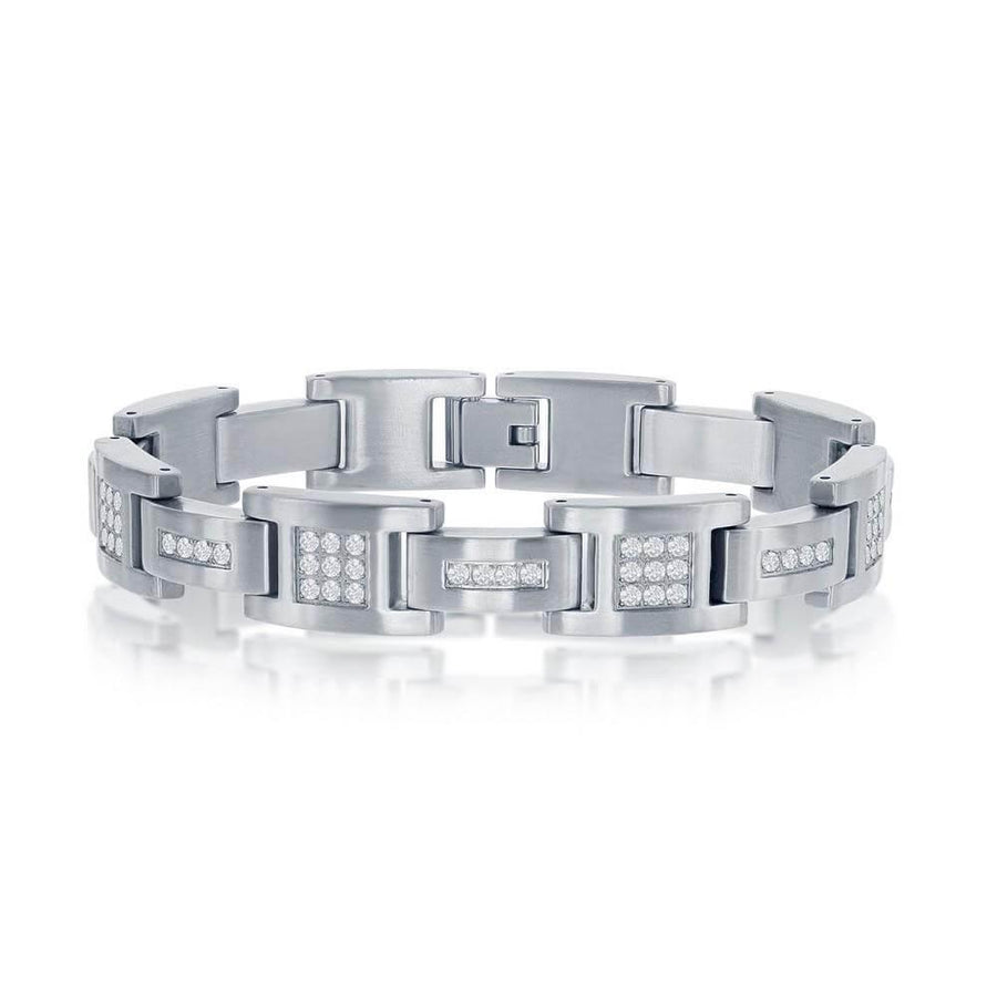 Stainless Steel Matte CZ Link Bracelet