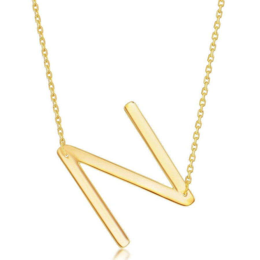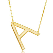 Sterling Silver (35MM) Large Sideways 'A through Z' Initial Necklace - Gold Plate
