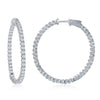 Sterling Silver 3x45mm Inside-Outside CZ Hoop Earrings
