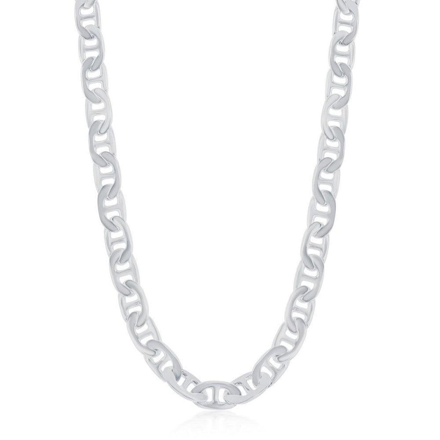 Sterling Silver 6.4mm Flat Marina Chain - Rhodium Plated