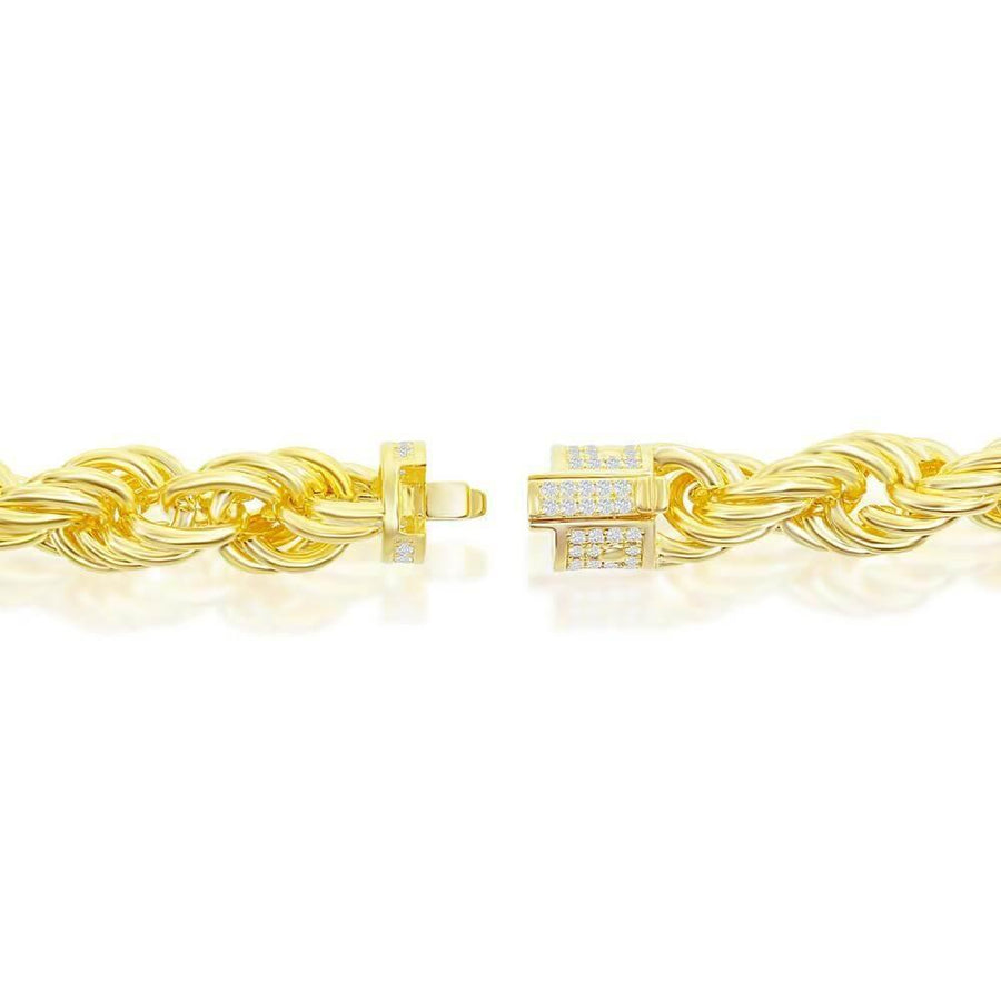 Sterling Silver 9.5mm Loose Rope With CZ Statement Lock Necklace 22"