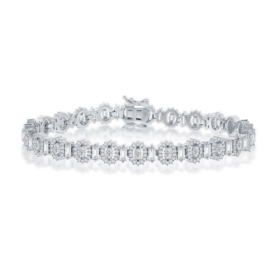 Sterling Silver Alternating Baguette & Oval CZ 5mm Tennis Bracelet