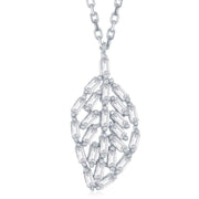 Sterling Silver CZ Baguette Leaf Shaped Necklace 16"