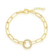 Sterling Silver CZ Circle Paperclip Bracelet - Gold Plated