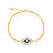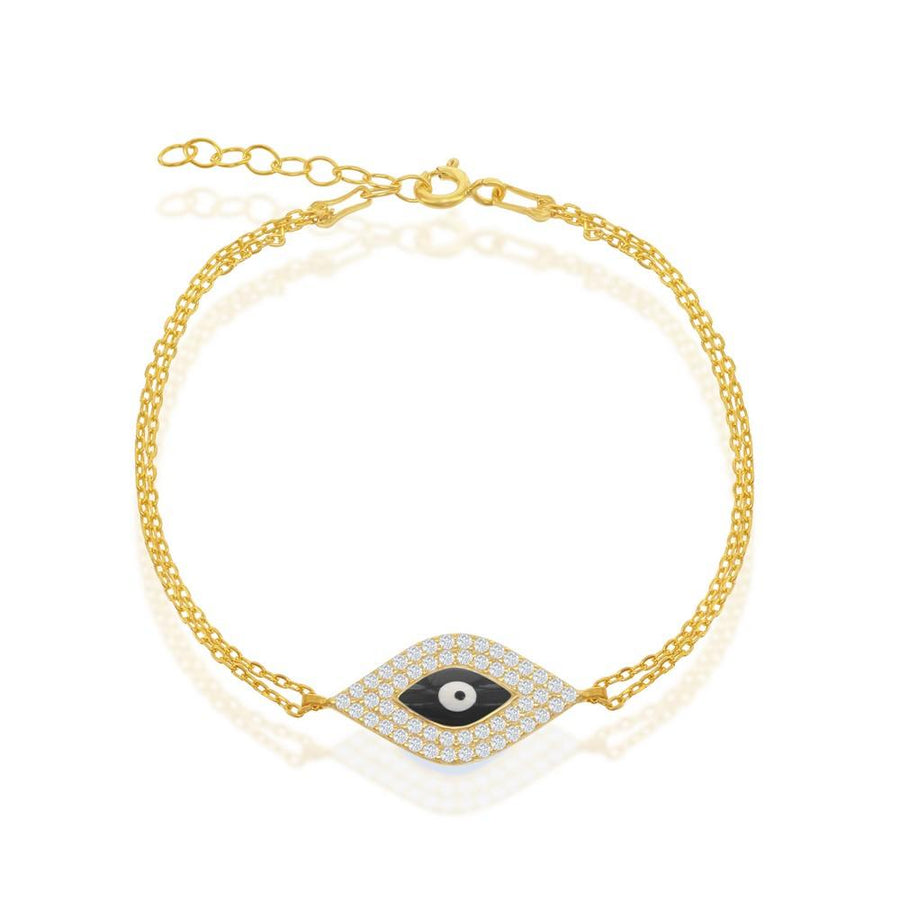 Sterling Silver Double-Strand With Center CZ and Evil Eye Bracelet - Gold Plated