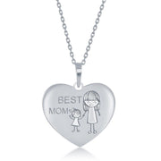 Sterling Silver EngravedBest Mom' Mom and Daughter Heart Necklace