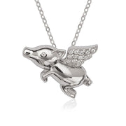Sterling Silver Flying Pig with CZ Wings Pendant