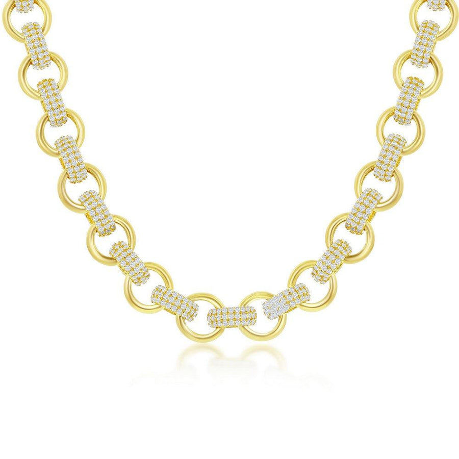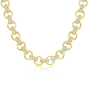 Sterling Silver Micro Pave CZ Linked Necklace - Gold Plated