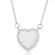 Sterling Silver Inlay Opal Heart with CZ Border Necklace